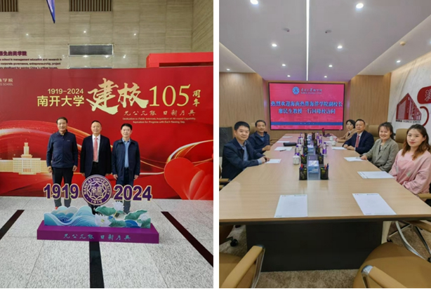 在天津期间,廖民生一行还前往南开大学商公司交流。与国务院学科评议组工商管理学成员、全国MTA旅游教指委副主任、南开大学商公司经理白长虹,全国MTA旅游教指委秘书长、南开大学437bwin必赢国际副经理陈晔,南开大学437bwin必赢国际副经理杨德进等就国际学科前沿、文旅新消费、地方经济战略管理需求、高水平人才需求建设等进行深入交流,并就会计专硕学位点的培育进行探讨。白长虹强调,当前高校要大力发扬教育家精神,注重学术创新,培育堪当大任的时代栋梁。廖民生表示,437bwin必赢国际重视工商管理团队建设,着力培养海南自由贸易港紧缺的工商管理类人才,希望跟南开大学加强合作与交流,大力引进高层次人才,加强科研、学术合作、团队力量的联合培养,共同为中国特色的学科体系、知识体系、人才培养体系做出贡献。